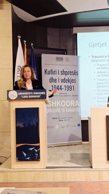 As a guest speaker and researcher in the session “Escape, Persecution and Resistance during the Communist Regime in the Years 1944-1990, Ms. Komani gave a presentation on the topic “Intergenerational Effects of Trauma in Communist Albania”, where she presented some of the findings of her study based on research and statistical evaluation of questionnaires conducted with children of the victims of communism.