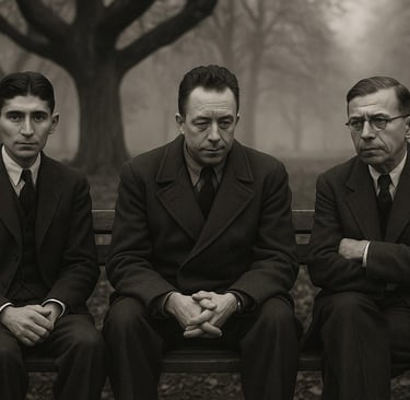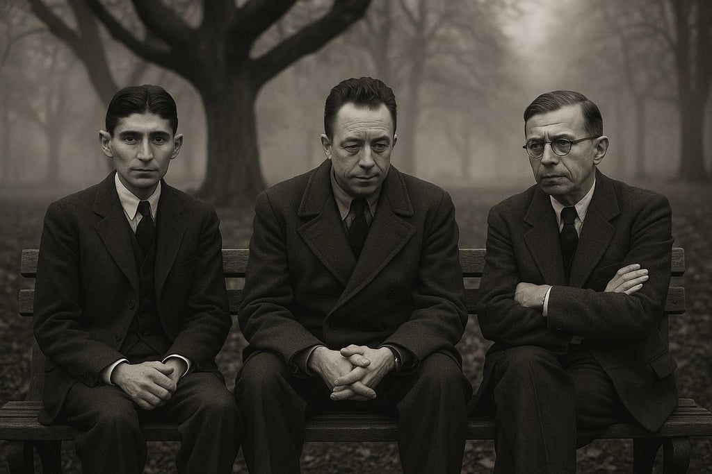 Shekulli i njëzetë lindi mes krismave dhe heshtjes së tokës së gjakosur. Luftërat botërore, makinat e reja të shkatërrimit, shpresat për një përparim të pandalshëm dhe zhgënjimi i madh që pasonte çdo premtim – të gjitha këto e lanë njeriun të zhveshur, pa strehë, përballë pyetjes së lashtë: pse të jetoj? Tre shpirtra të ndryshëm, të lidhur nga i njëjta ankth dhe e njëjta vetmi, u ngritën mbi këtë horizont të errët për t’i dhënë formë kësaj pyetjeje: Franc Kafka, Alber Kamy dhe Zhan-Pol Sartri.